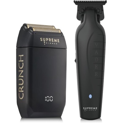 Vader Trimmer & Crunch Aluminum Foil Razor Haircut Set Professional DLC T-Blade Beard Trimmer ST3778 & STF602 Waterproof IPX6 Razor Set (Black)