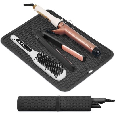 Extra Large Silicone Heat Resistant Mat, Portable Travel Mat with Velcro, Suitable for Curling Iron, Hair Straightener, and Hot Hair Styling Tools (14.2 inches x 11 inches)